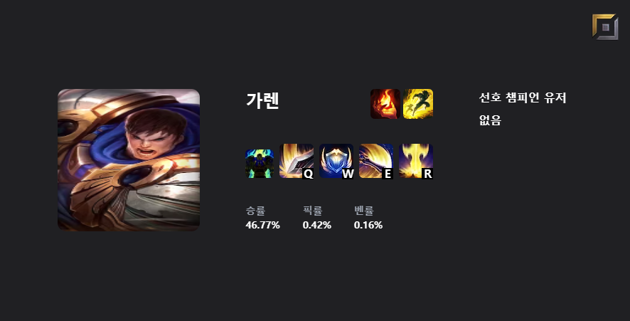 챔피언 승률/ 벤률/ 픽률/ 선호 포지션